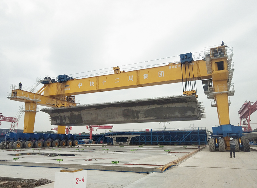 ▲900噸提梁機(jī)正在提梁