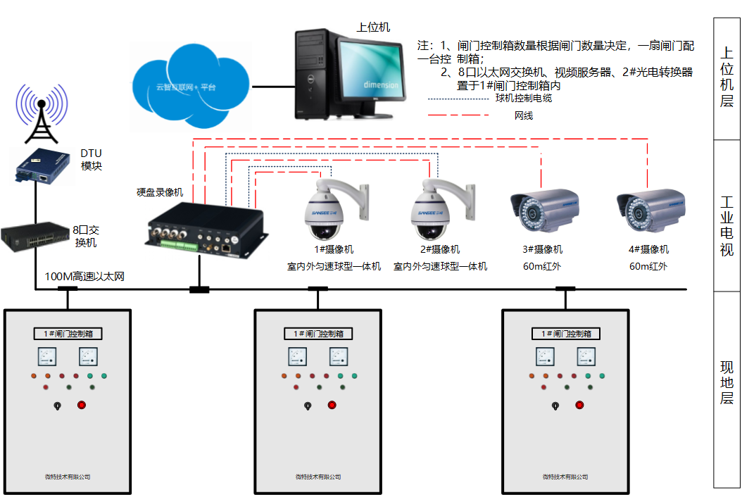由微特為客戶提供的技術(shù)解決方案,全系統(tǒng)采用4套閘門現(xiàn)地操作箱和一套可編程控制單元及相關(guān)配套通信設(shè)施。采用可編程控制器控制方式設(shè)計?,F(xiàn)地控制單元完成對閘門的數(shù)據(jù)采集及數(shù)據(jù)預(yù)處理,負(fù)責(zé)通過網(wǎng)絡(luò)傳送數(shù)據(jù)信息,并自動服從上位機的命令和管理。