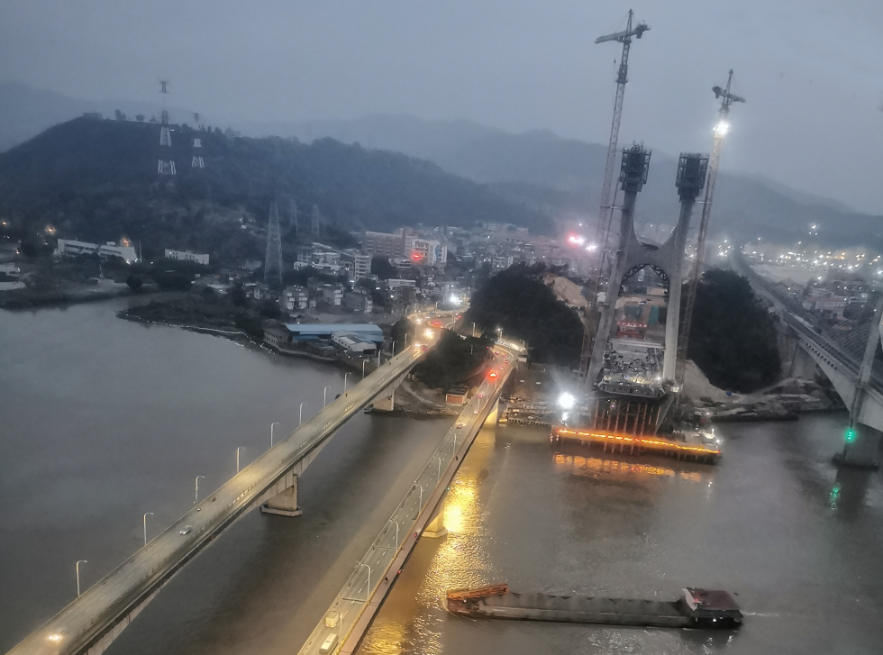 其中烏龍江特大橋位于福州倉(cāng)山區(qū)和閩侯縣境內(nèi),其下游約220米就是324國(guó)道烏龍江公路橋,全長(zhǎng)868.188米,跨324國(guó)道和烏龍江。本橋?yàn)殡p線(xiàn)橋,全長(zhǎng)868.178米,共計(jì)14個(gè)墩臺(tái),總投資約1.33億元。該橋采用雙線(xiàn)矩形空心橋臺(tái),主跨為(144+288+144)米部分斜拉橋,為世界范圍內(nèi)同類(lèi)橋型最大跨度。