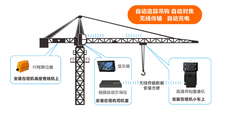 將攝像機(jī)安裝在塔式起重機(jī)大臂的最前端或者吊鉤上方,拍攝區(qū)域不會(huì)被其它物體遮擋,鏡頭可自動(dòng)追蹤吊鉤,自動(dòng)對(duì)焦,司機(jī)可清晰的看到拍攝畫(huà)面,根據(jù)拍攝畫(huà)面自主判斷吊裝情況,結(jié)合信號(hào)員的引導(dǎo)達(dá)到雙保險(xiǎn)的效果。