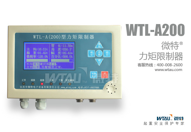 總述:WTL-A200型力矩限制器是我公司于2008年底推出的一款力矩限制器,它的前身是我公司的WTL-B型儀表(詳情參閱我公司2007版資料)。主要使用對象為汽車吊、履帶吊、港口門座機(jī)、造船門座機(jī)、抓斗吊機(jī)、船用伸縮吊機(jī)等起重設(shè)備。面對客戶人群為中高端客戶。