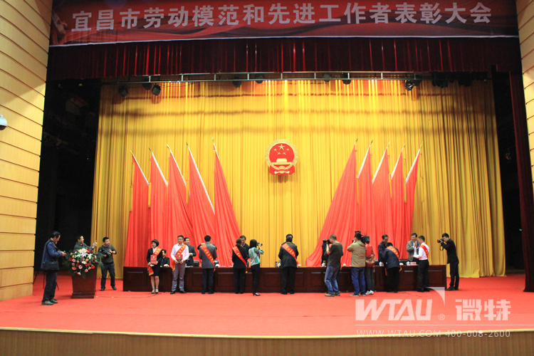 4月26日,宜昌市勞動(dòng)模范和先進(jìn)工作者表彰大會(huì)在宜昌劇院隆重舉行,我司研發(fā)工程師謝邦天被授予“宜昌市勞動(dòng)模范”稱號(hào)。宜昌市市委書記黃楚平,市長馬旭民,市政協(xié)主席李亞隆,市統(tǒng)戰(zhàn)部部長、工會(huì)主席劉學(xué)甫等領(lǐng)導(dǎo)參加了此次會(huì)議并向勞動(dòng)模范授獎(jiǎng),會(huì)議由馬市長主持召開。