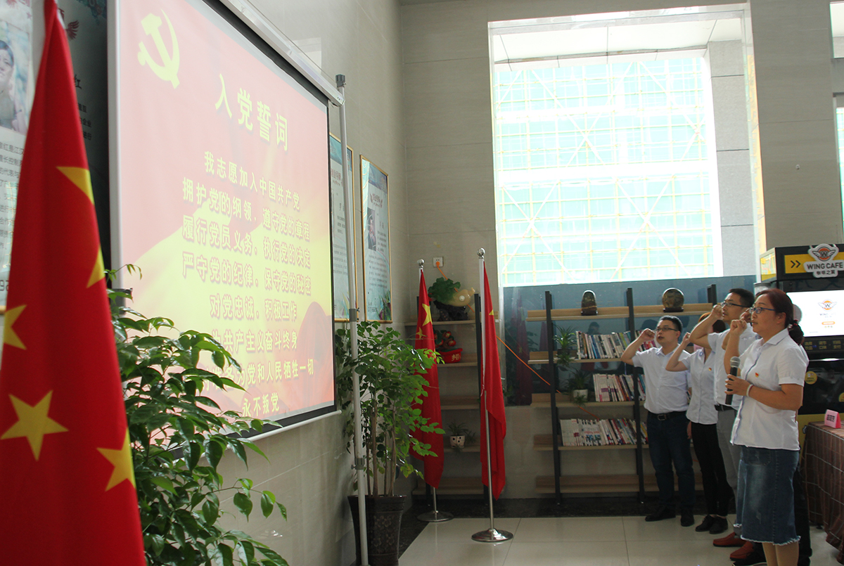 會議開始,由中共宜昌智能裝備創(chuàng)業(yè)聯(lián)盟第二支部書記楊英帶領微特全體黨員及預備黨員同志重溫入黨誓詞。