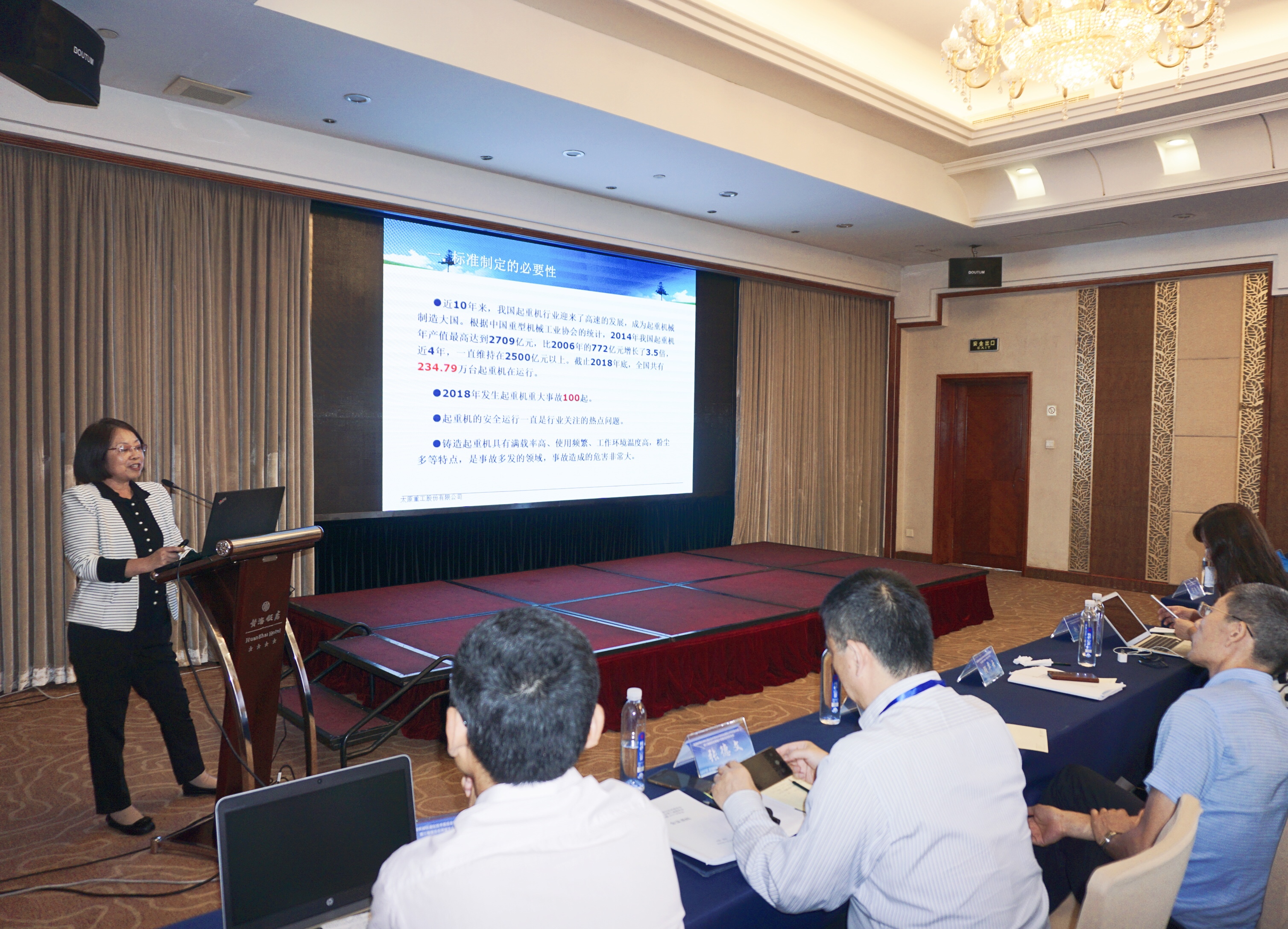 根據(jù)日程安排,會議舉辦了臂架起重機(jī)標(biāo)準(zhǔn)化專題講座,幾位特邀嘉賓針對臂架起重機(jī)標(biāo)準(zhǔn)化現(xiàn)狀與發(fā)展、標(biāo)準(zhǔn)國際化、起重機(jī)報(bào)廢與安全、智能港口等專題做了精彩分享,引起與會專家和代表的熱烈討論。