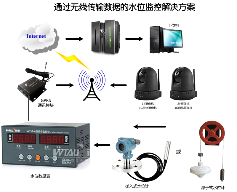 我們目前推薦使用兩種水位傳感器,用戶可根據(jù)現(xiàn)場要求選擇,一種為拋入式液位變送器,一種為浮子式水位計。